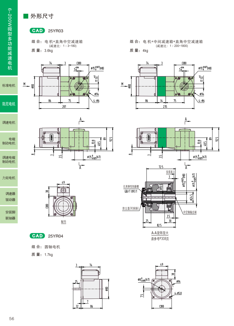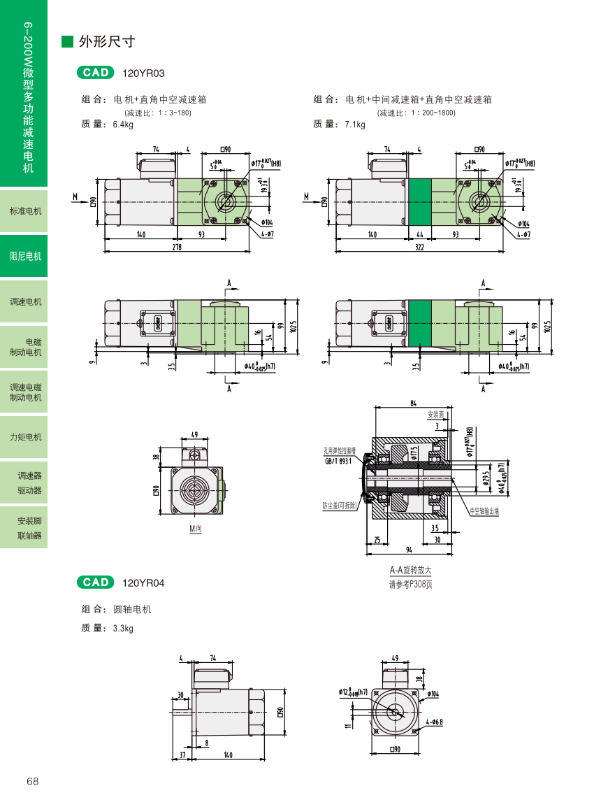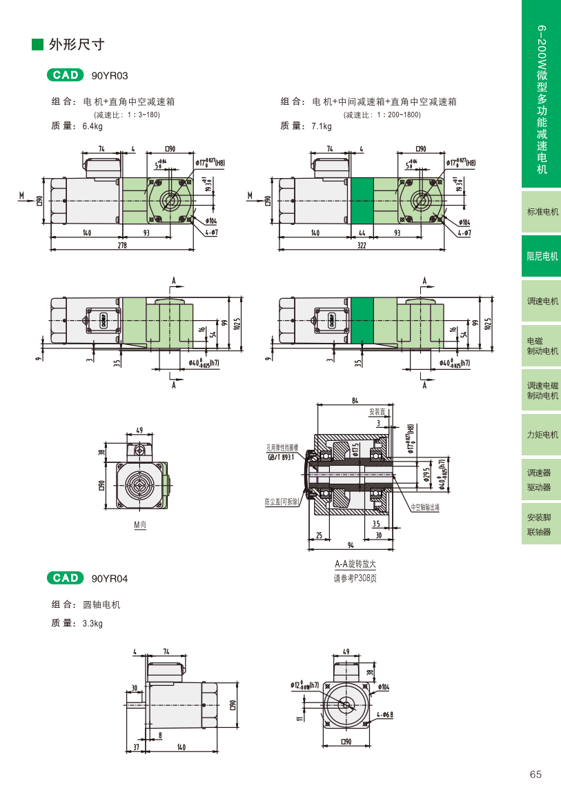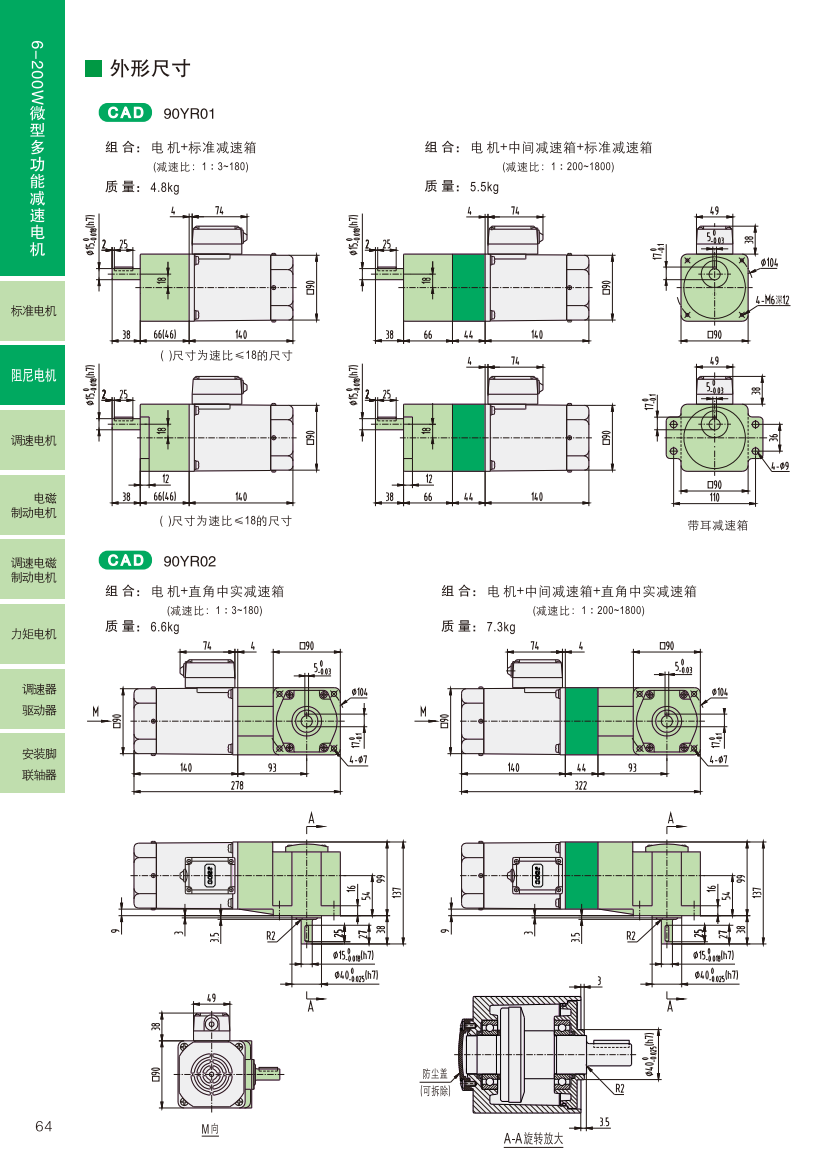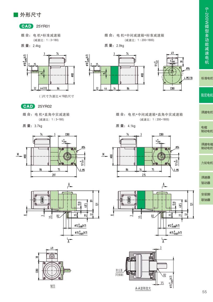 速比范圍1:3~1:1800,可使用二級減速,直角中實,直角中空,圓軸,曲軸等多種裝配方式。