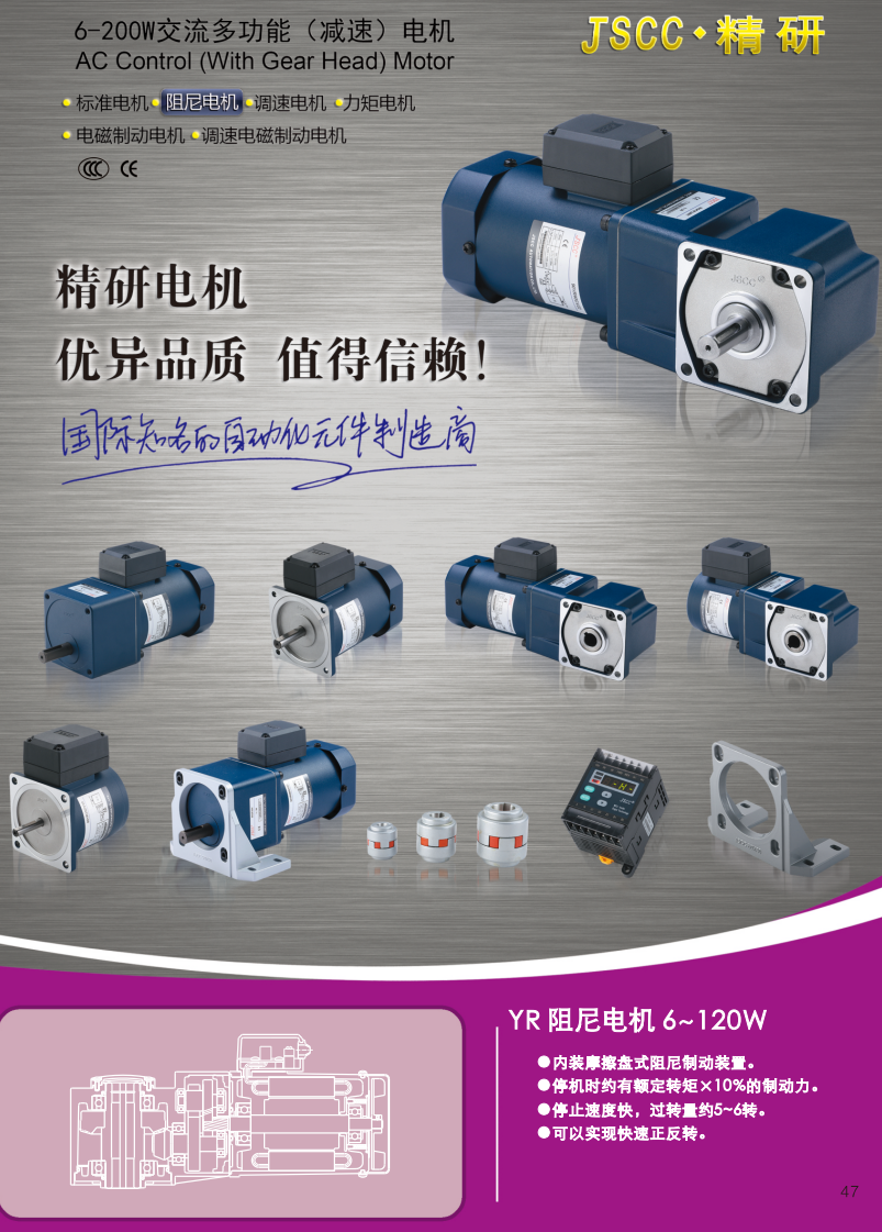 精研電機始終秉承“精益求精,研發創新”的理念為客戶提供優質可靠的產品。 YR系列阻尼電機,在YS系列標準電機基礎上,內裝摩擦盤式阻尼制動裝置,幫助電機能夠更快,更平穩的停止。 現在YR阻尼電機可以通過DB,DK系列內置式驅動器達到緩慢加減速、快速停止等效果。