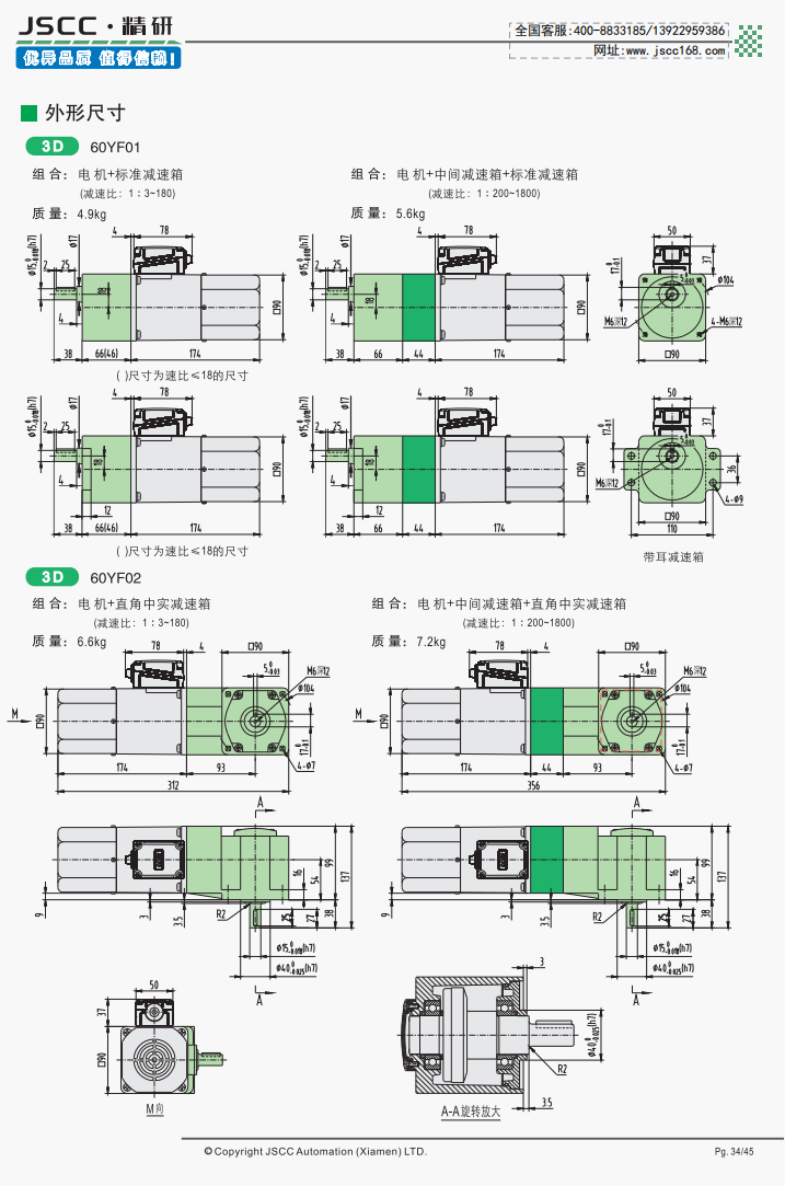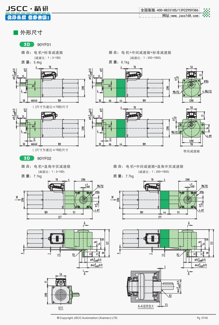 速比范圍1:3~1:1800,可使用二級減速,直角中實,直角中空,圓軸,曲軸等多種裝配方式。