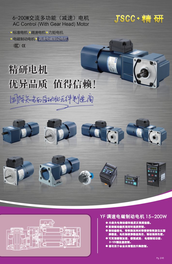 精研電機始終秉承“精益求精,研發(fā)創(chuàng)新”的理念為客戶提供優(yōu)質(zhì)可靠的產(chǎn)品。 YF系列調(diào)速電機,是精研技術推出的帶有速度反饋測速器又同時帶有電磁制動器的電機,包含有YT調(diào)速電機與YB電磁制動電機所有功能與特性。 提示*YF系列尺寸也是微型電機家族同功率段最大的,在進行同位產(chǎn)品替換時應注意尺寸空間* 需要搭配我司SFB,SKB,DK系列調(diào)速器或驅(qū)動器使用。