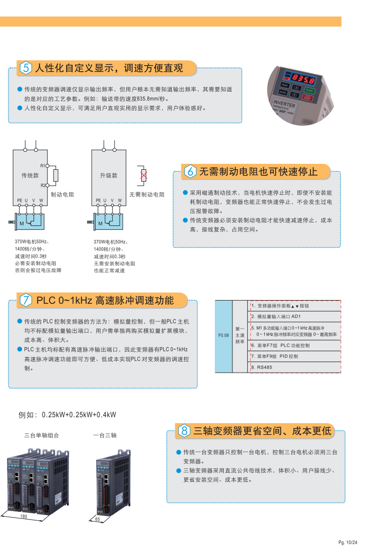 · 0-10V模擬量輸入輸出 · 三段多段速 ·直流制動