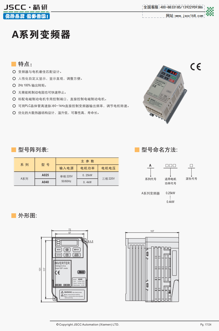 精研技術始終秉承“精益求精,研發創新”的理念為客戶提供優質可靠的產品。 A系列變頻器,是精研針對250W~400W 三相電動機的使用研發的產品,其在250W及400W小型電機上能發揮最高的性能,最大限度地發揮電機驅動力。 現在如需使用多軸或總線形式布局,可查看我司BDA\BDC、BKA\BKC系列變頻器