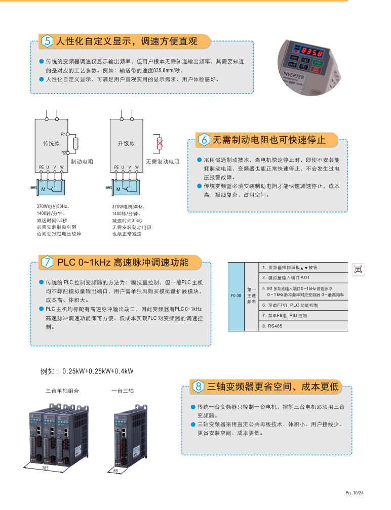 豐富功能,簡單操作,輕松設(shè)定· 0-10V模擬量輸入輸出 · 三段多段速 ·直流制動