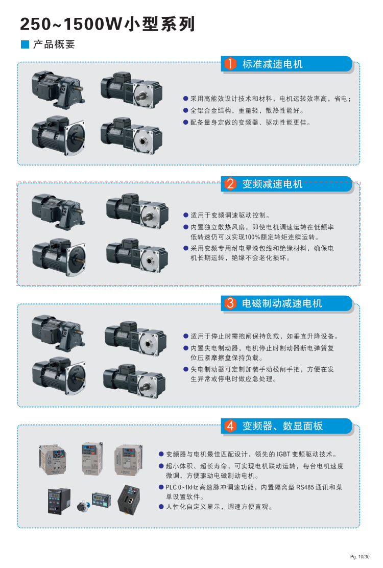 精研電機(jī)始終秉承“精益求精,研發(fā)創(chuàng)新”的理念為客戶提供優(yōu)質(zhì)可靠的產(chǎn)品。 小型電機(jī)相比于微型電機(jī)除了功率增大以外,對(duì)整體電機(jī)的結(jié)構(gòu)和可靠性有同樣高的要求,而三相電機(jī)相比于單相電機(jī)在啟動(dòng)轉(zhuǎn)矩,溫升等性能指標(biāo)上有明顯的提升。 小型電機(jī)全系列皆為三相電機(jī),故控制時(shí)必須使用變頻器控制,可搭配我司A系列與B系列變頻器使用。